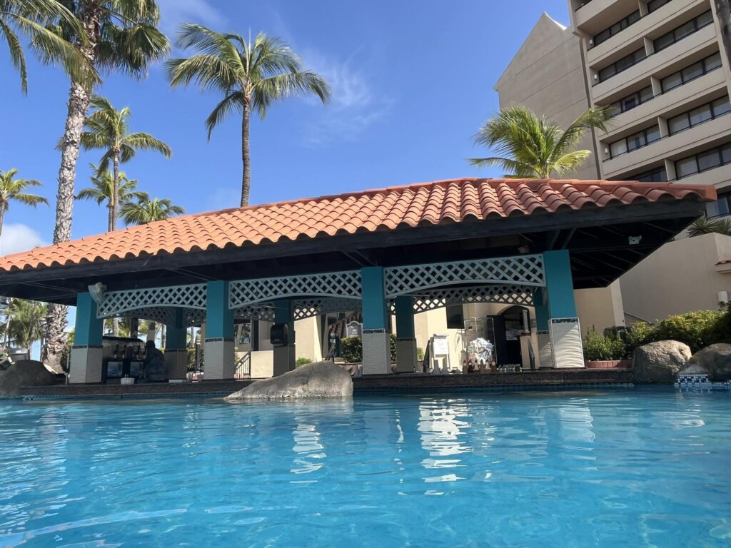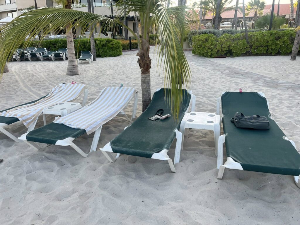 Each morning at Barceló Aruba, we made our way down to the beach around 6:45 a.m. to “claim” our chairs, though the coveted tiki-style shelters were always gone by 6 a.m. Breakfast was solid, with the highlight being the enormous cooked-to-order omelets. Lunch was just okay, but the real standout was the service on the beach—while it seemed there was only one server covering everyone, he was kind enough to fill our Yeti cups with mojitos instead of the small paper ones. The swim-up bar was a fun touch, with rock-style stools and bartenders who kept drinks flowing quickly. In the evenings, we especially loved the lobby bar, where the espresso martinis, particularly the darker version, were excellent, and far better than the Bailey ’s-based ones.