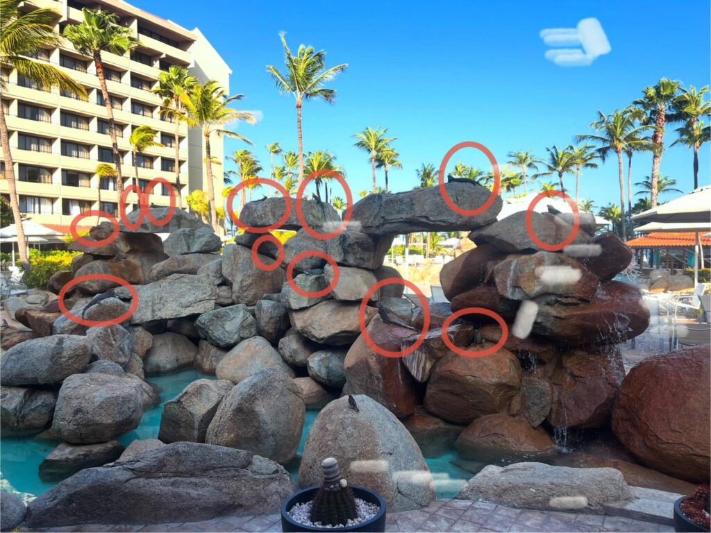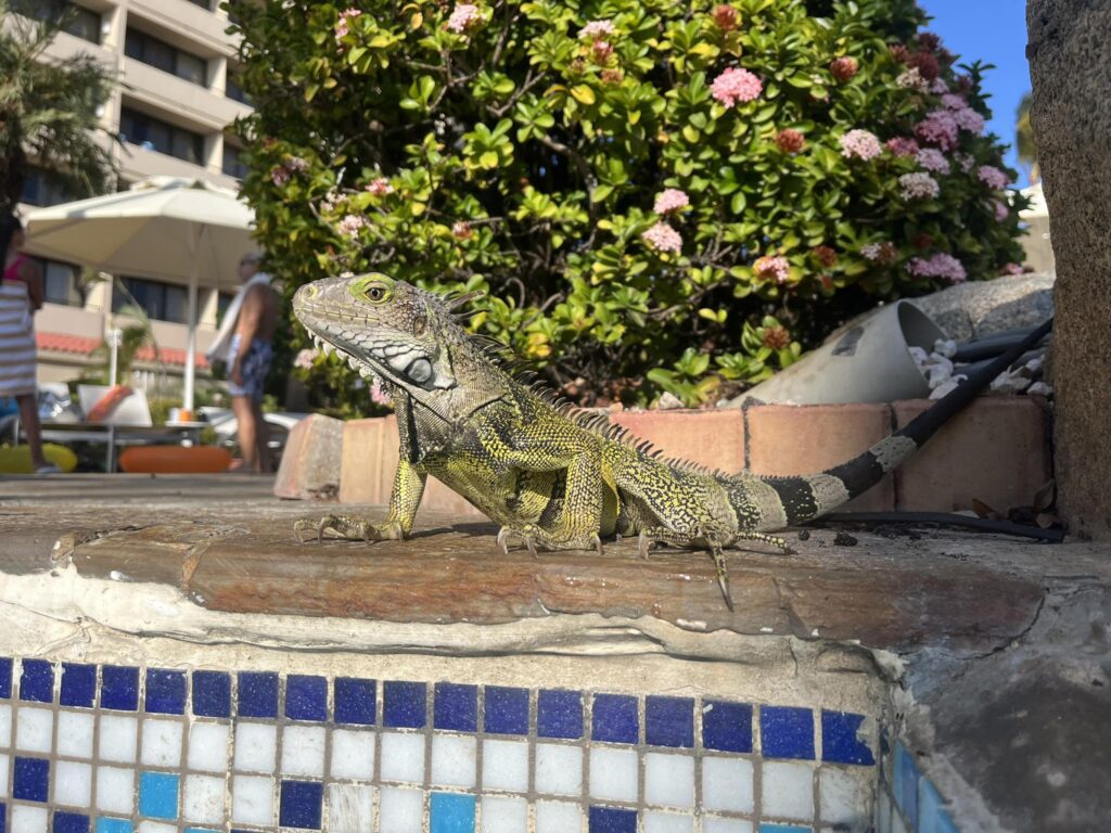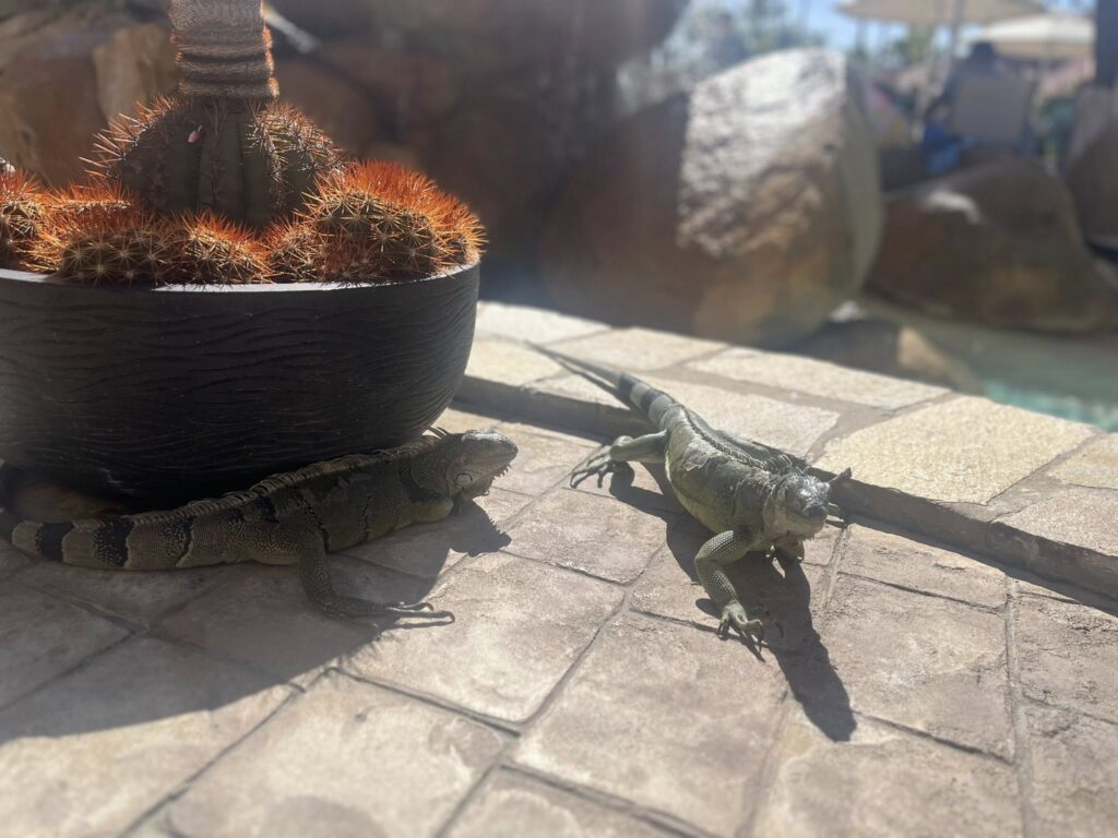 I’ve never seen so many iguanas in one place before—at the Barceló, I once counted 17 at the same time sunning themselves on the rocks, and I’m sure there were more nearby. They’re everywhere, almost like the resort’s unofficial pets. The iguanas love fruit, and while you can feed them, it’s best to toss it toward the rocks rather than hand it to them directly. I actually heard of one guest getting nipped when an iguana went for more than just the fruit and caught his finger instead. Definitely avoid feeding them near the tables where people are eating—I even saw a picture of one climbing onto someone’s lap at a dining table! While they usually hang around the rocks, they’ll wander into the grassy areas and even as far as the pool. At the end of the day, they’re still wild animals, so it’s best to admire them with a little distance.