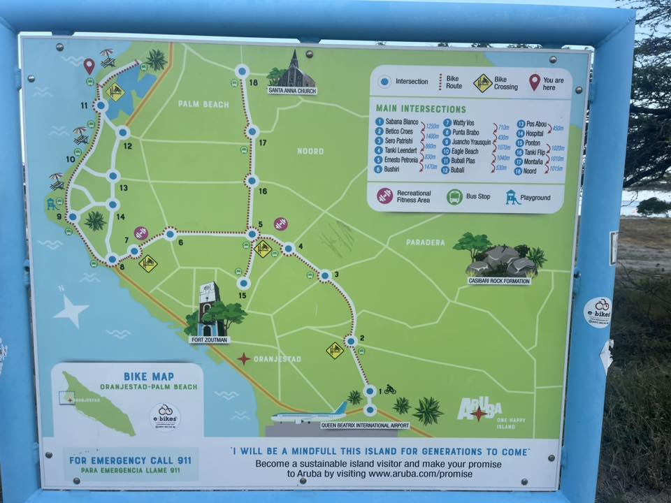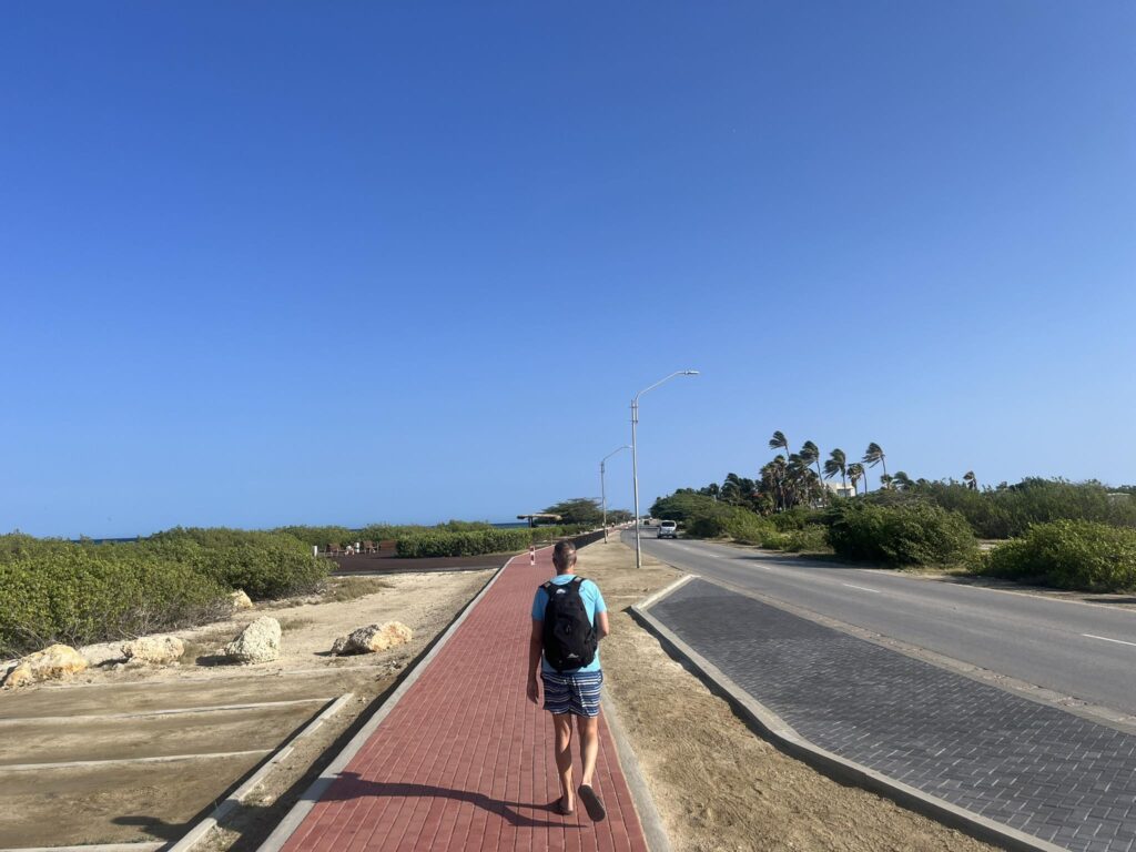 The bike and walking path in Aruba stretches along the island’s scenic western coastline, connecting many of the popular Palm Beach hotels to quieter spots like Boca Catalina. It’s well-paved and easy to follow, weaving past resorts, beaches, and rocky coves. Along the way, you’ll catch glimpses of the turquoise sea, lush landscaping, and even some of the island’s most beautiful oceanfront homes. The path makes it simple to explore on foot or by bike while enjoying Aruba’s natural beauty.