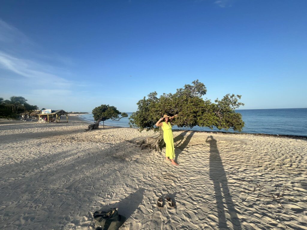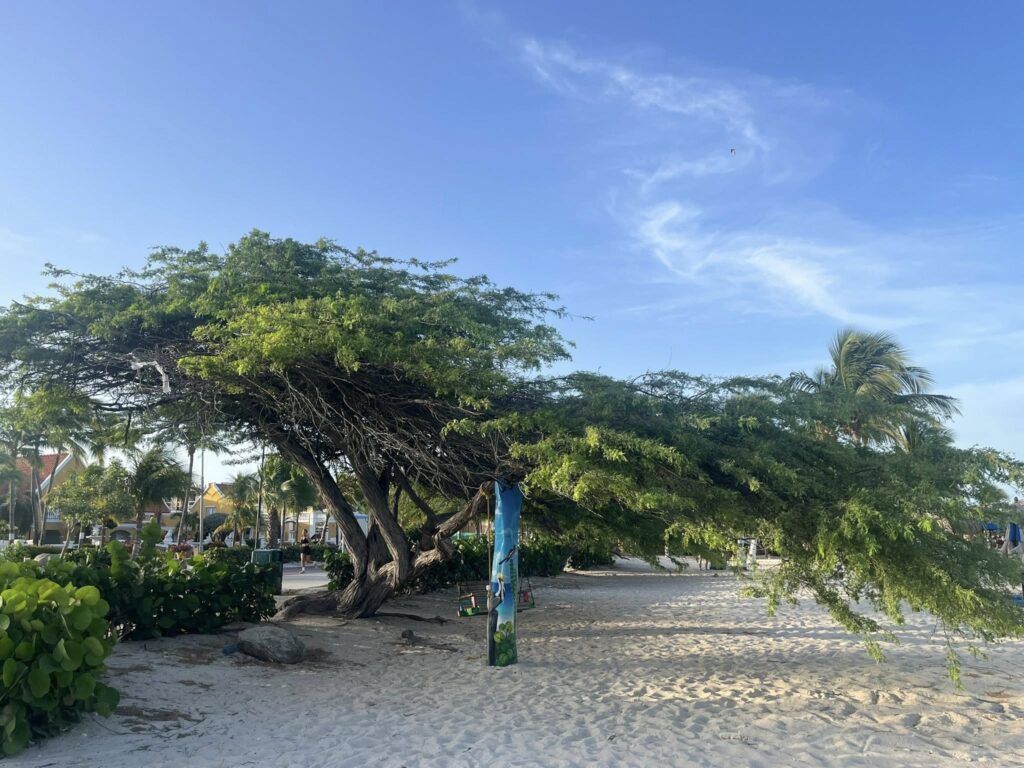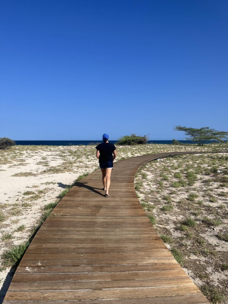 We decided to make a morning of it, walking the 20 minutes from our hotel. There’s the board walk along Palm beach that then turns into a short trail through the woods and onto the bike trail that connects all the beaches. We enjoyed our morning stroll and taking in the peaceful scenery. As you get close you start to see all the Fofoti Trees. We soaked in the sun, admired the divi-divi tree, and even paused to dip our toes in the water. After spending time enjoying the view and the soft sand, we made the walk back the same way, only it was a LOT hotter out.