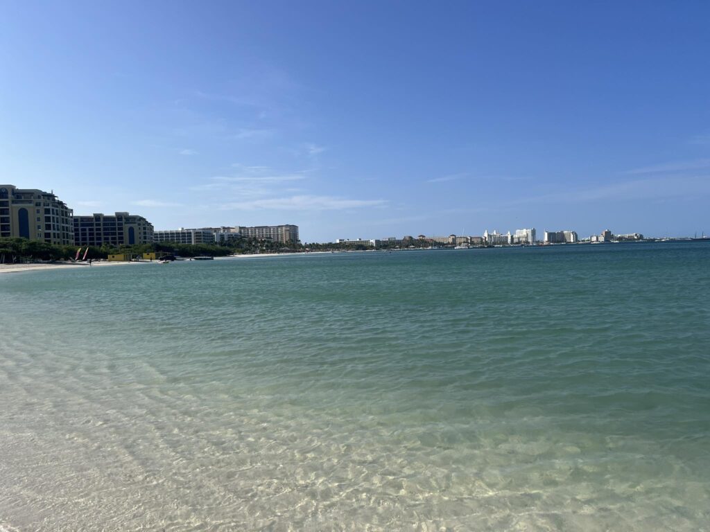 The beach did get crowded, but the water was calm. It was mostly clear, but on windy afternoons it did get a little cloudy. There was some seaweed. Our friends who joined us on this trip were glad they had their water shoes.