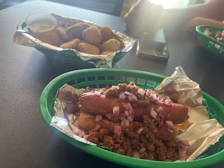 - The Salty Pickle (Garden City, SC) Casual beachfront bar and grill known for seafood baskets, refreshing drinks, and a lively, family-friendly atmosphere. We occasionally stop in for a hotdog and a drink if we don’t pack our lunch for the beach. The homemade pickles are awesome.