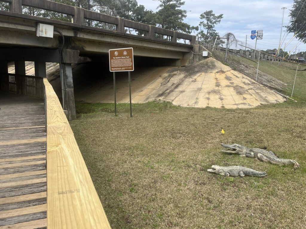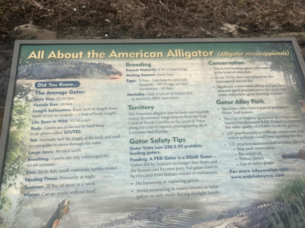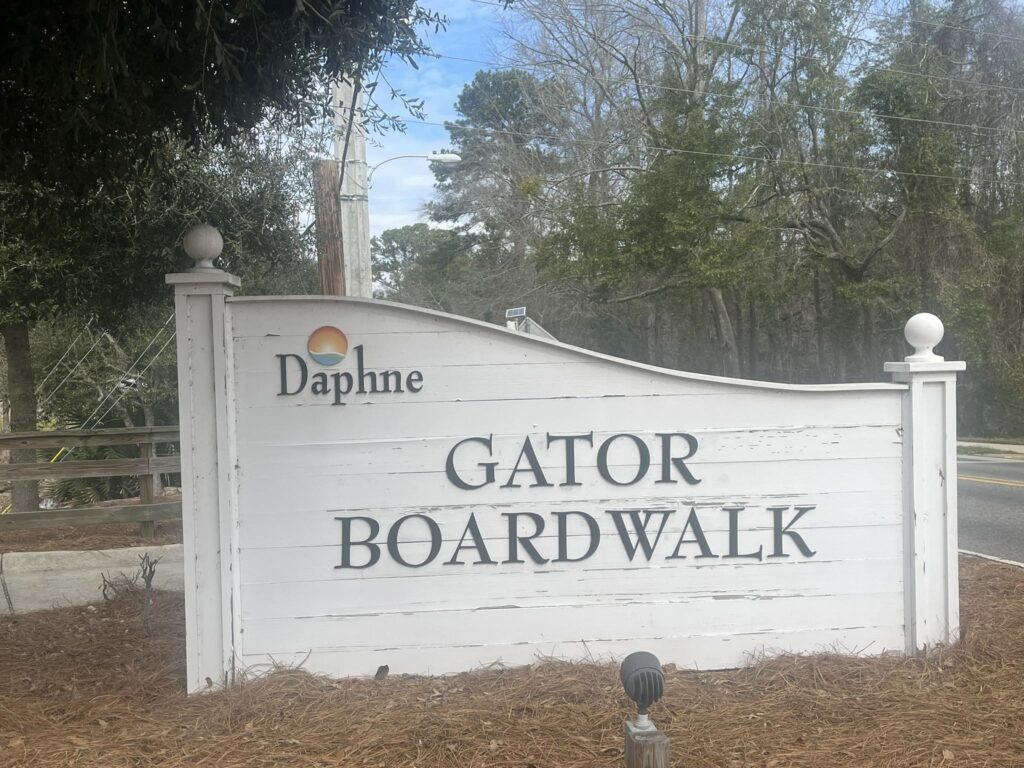 Nature enthusiasts will love a stroll through Gator Alley in Daphne, a unique boardwalk that winds through a wetland habitat where visitors can safely observe alligators in their natural environment. We didn’t see any when we visited but we enjoyed the short little walk.