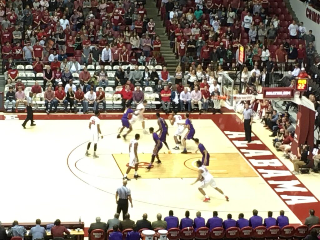 We spent the afternoon soaking up the buzz of campus before heading to the basketball game, but not without a little pregame action of our own. First stop was to get a Yellow Hammer Slammer. Then we made our way to Houndstooth, where the crowd was rowdy, the drinks were flowing, and the TVs were already locked onto game highlights. By the time we walked over to the arena, we were fully in the spirit—loud, hyped, and ready to cheer on the Tide.
