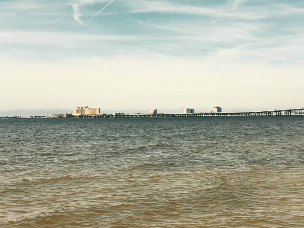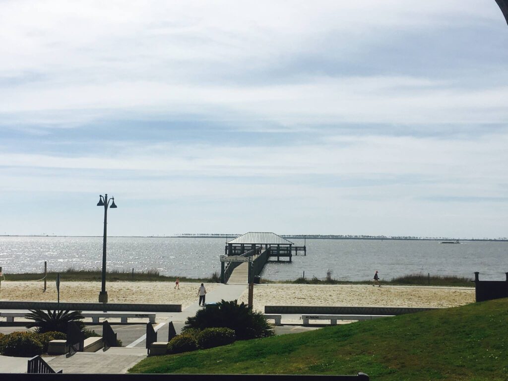 - Jones Park: Jones Park is a scenic waterfront park located in downtown Gulfport, offering green spaces, walking paths, playgrounds, and picnic areas. The park also features a fishing pier, splash pad, and amphitheater for concerts and events. We had our dog with us and enjoyed walking him along the shore. This was his first time in the ocean, and well he wasn’t a big fan of getting wet.