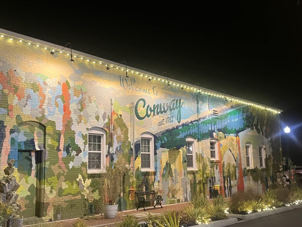 Where the Waccamaw River winds through historic streets, Conway combines small-town charm with a lively college atmosphere. Live oak–lined avenues, riverfront views, and a growing arts scene make this coastal town a year-round escape. The small town comes alive with its holiday decor, especially during Halloween and Christmas.