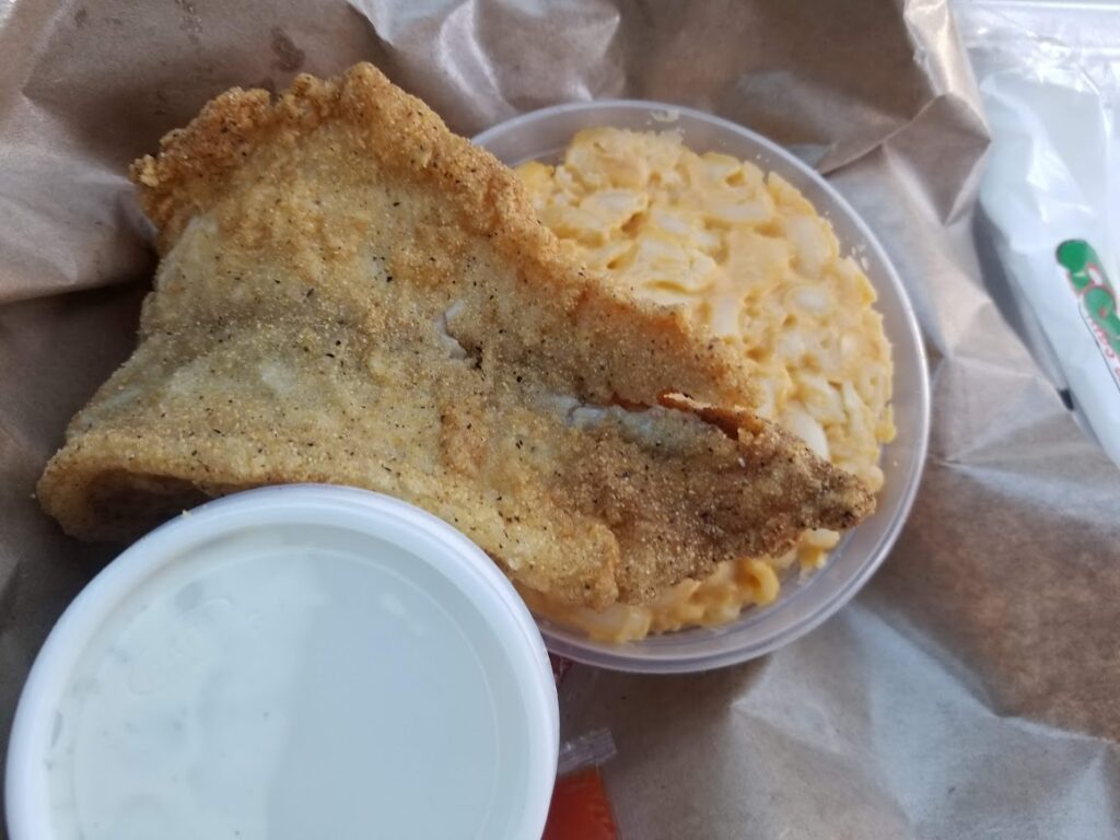 • Fried Catfish: Golden-fried and served with hush puppies and coleslaw.