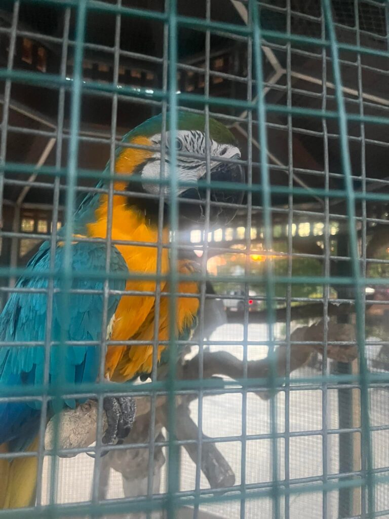 - The parrot at The Island in Pigeon Forge is one of those quirky, unexpected touches that adds to the charm of wandering around there. It’s in a cage and we could have sat there much longer and watched him had it not been so hot out.
