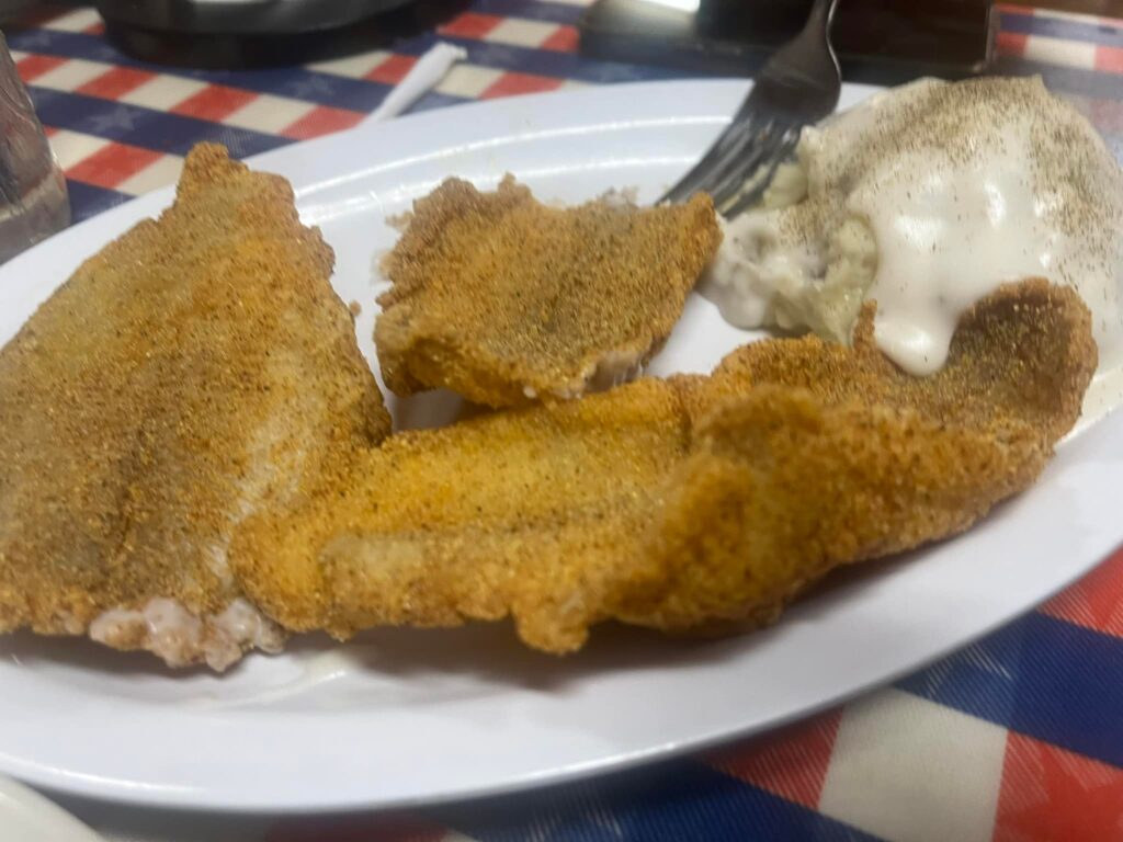 - EAT: Fried Catfish (Or Fried Chicken) at The Old Mill Restaurant with all the fixings.
